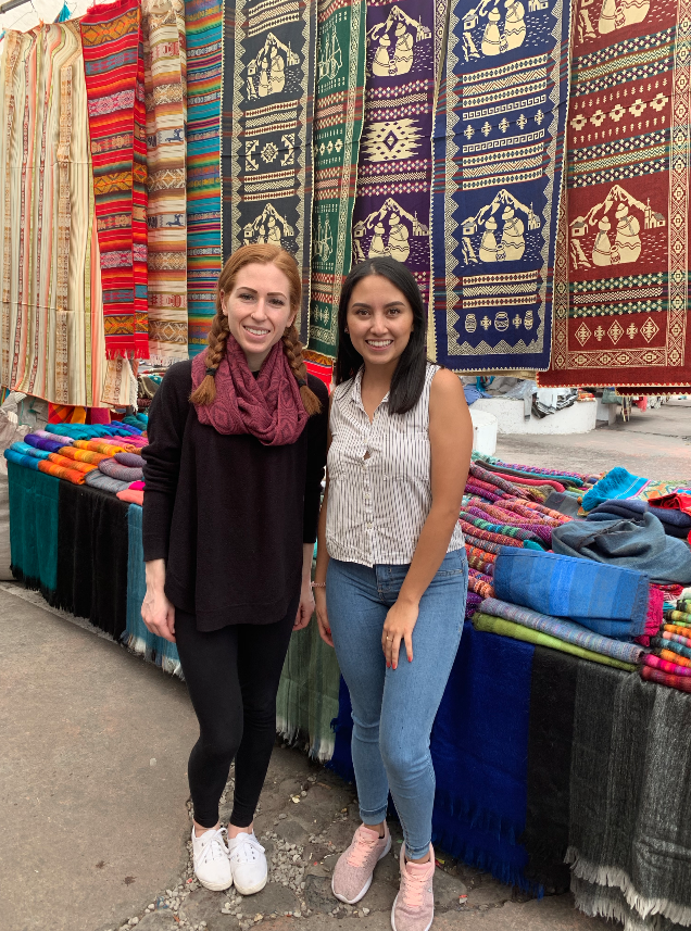The first day of K.Leigh and Marco’s trip introduced them to the culture of Ecuador. WWCE’s partner, Xplorer, brought K.Leigh and Marco to an artisan market, a peaceful lake, and the middle of the world. Two hours outside of Quito, the indigenous people of Otavalo showcase their talents for handcrafted items by selling colorful geometric blankets, embroidered kitchen textiles, vibrant paintings of local peoples and landscapes, and more. K.Leigh left with a maroon circle scarf (featured below) and adorable thread-covered pens with llamas on top to share with the WWCE office. Next, the group travelled to San Pablo lake, a serene location with active and inactive volcanos as a backdrop. Lunch on the lake was traditional fare, with K.Leigh trying a vegan version of the popular item ceviche. Following lunch, the group visited Ciudad Mitad del Mundo - the middle of the world city. Within the tourist attraction, K.Leigh and Marco explored exhibits that recreate the lifestyle of indigenous people and stood on the center of the earth - the longitude degree of 0’. Fun fact: Quito’s name was derived from the word equator. The day ended with a delicious meal overlooking the city’s lights.