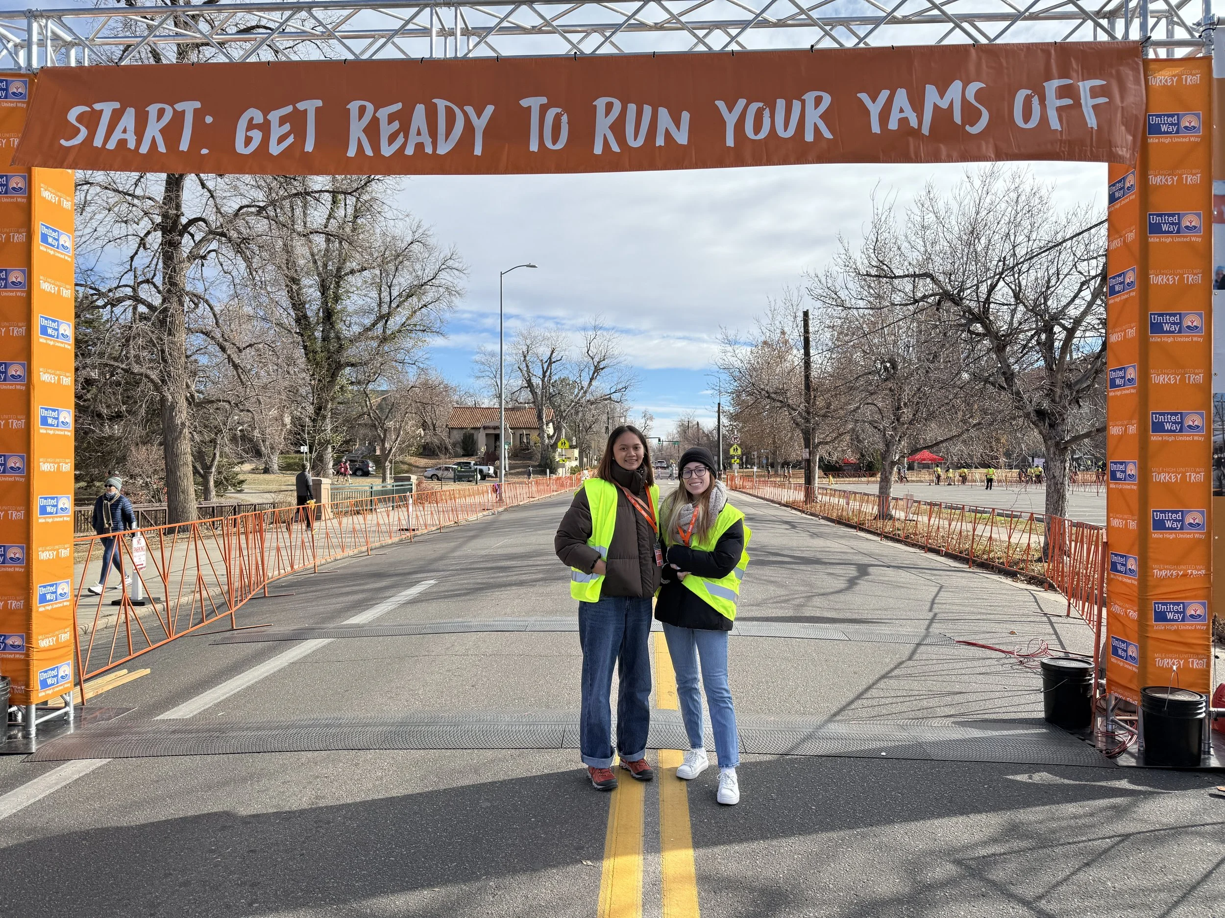 Our Director of Seasonal Programs, K.Leigh, and Mira, our culinary intern from the Philippines, kicked off their holiday by donning bright volunteer vests and joining the Mile High United Way team for a morning of service and celebration. For Mira, who has competed in running events back home, the Turkey Trot offered a perfect way to experience race culture in the United States while giving back to her temporary community.